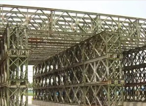 贝雷片具有结构简单、运输方便、架设快捷、载重量大、互换性好、适应性强的特点。“321”钢桥是在原英制贝雷桁架桥基础上,结合我国国情和实际情况研制而成的快速组装桥梁,于1965年定型生产,在我国得到了很大发展,贝雷片广泛应用于战备、交通工程、市政水利工程,是我国应用为广泛的组装式桥梁。